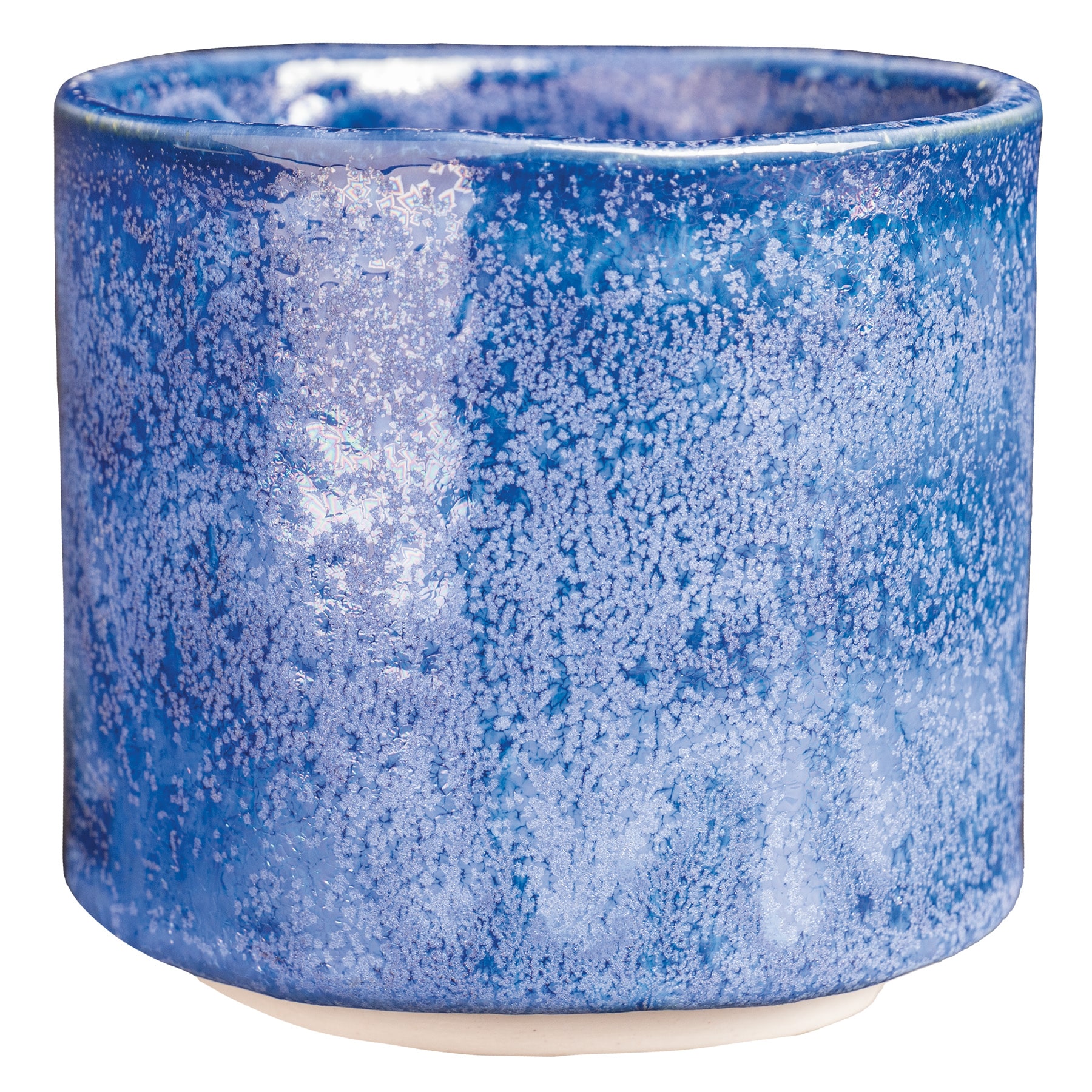 CO-21 Galactic Glacier is a highly fluid light blue glaze with iridescent crystals that flash pink, violet, and silver.