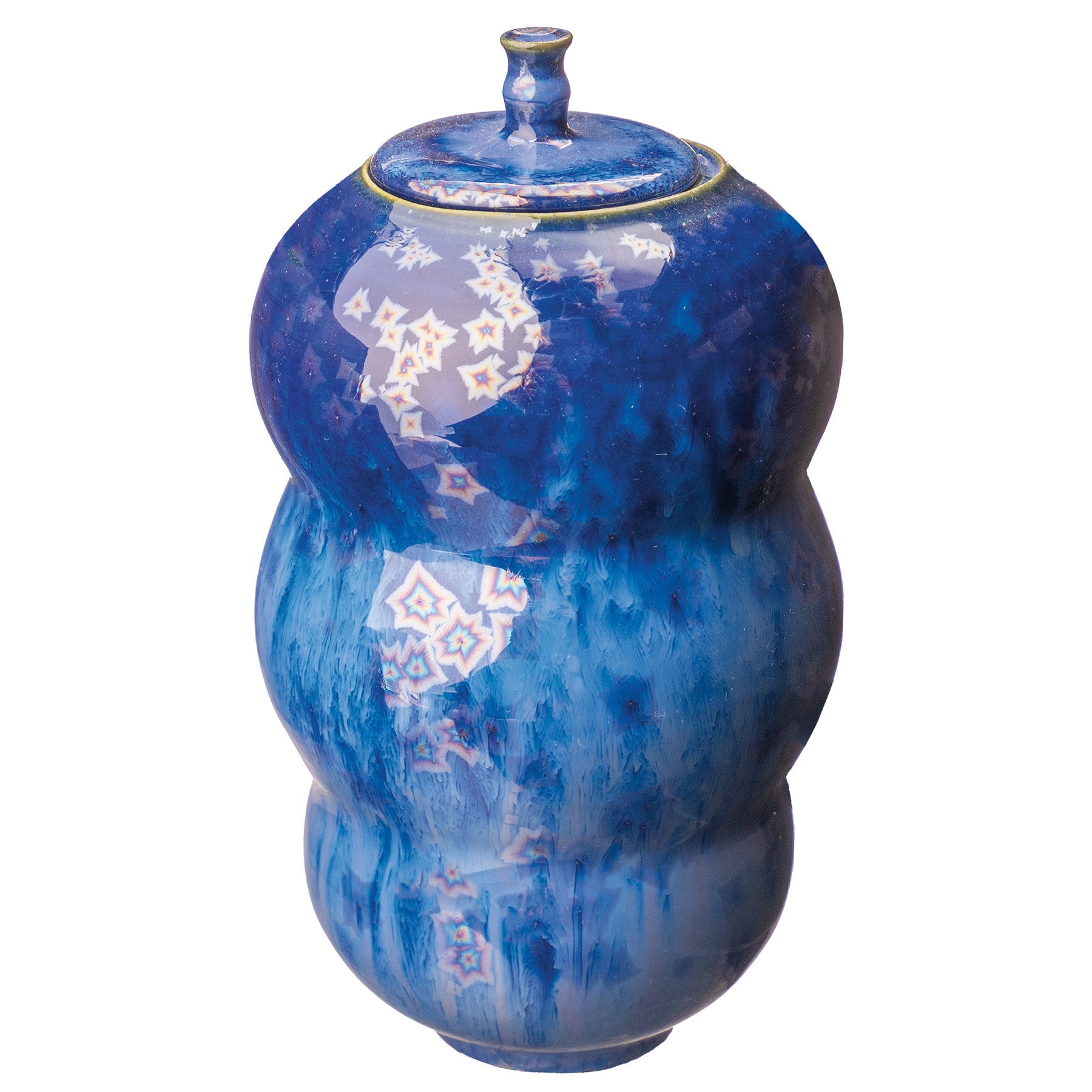 For best results, leave the inside or back of the form unglazed. These glazes are prone to running so it’s recommend to stop your glaze about half an inch above the foot. You can also use a drip tray or soft bricks to protect kiln shelves. Can be fired in a normal medium-speed firing with no special cooling schedule required. To take this glaze to the next level, use a controlled cooling schedule for increased crystal growth