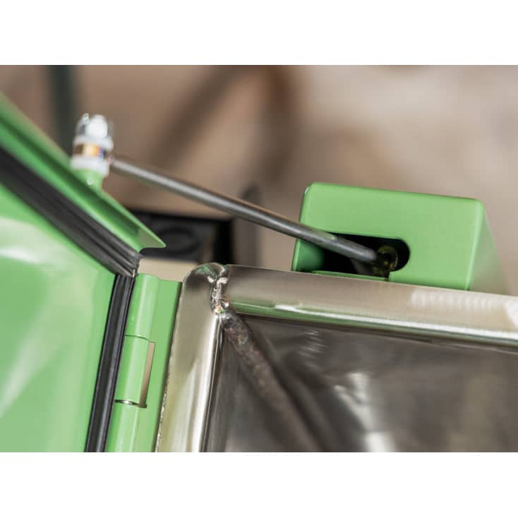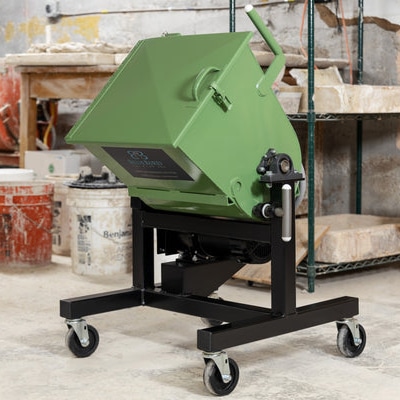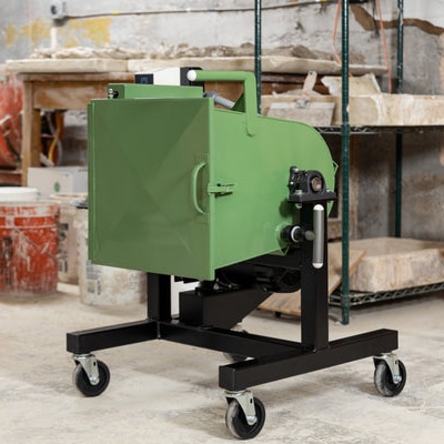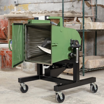 This mixer is designed to mix clay rapidly and efficiently, now in 125-pound wet batch sizes. For the clay programs that need to mix hundreds of pounds a clay per week. Sealed lid to contain dust. Dumping action for quick, easy batch removal of mixed clay. Convenient cart allows this smaller machine to be tucked away when not in use. Locking casters included. Washdown rated for easy clean up and clay body changes. All stainless-steel construction. Powder coated exterior and frame. Improved seals to protect bearings. Variable speed- great for mixing slip.