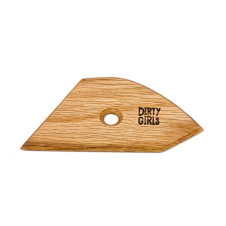 Wood rib with 3 straight edges and one curved, great for defining the shape of a pot and trimming the skirt where the foot begins.