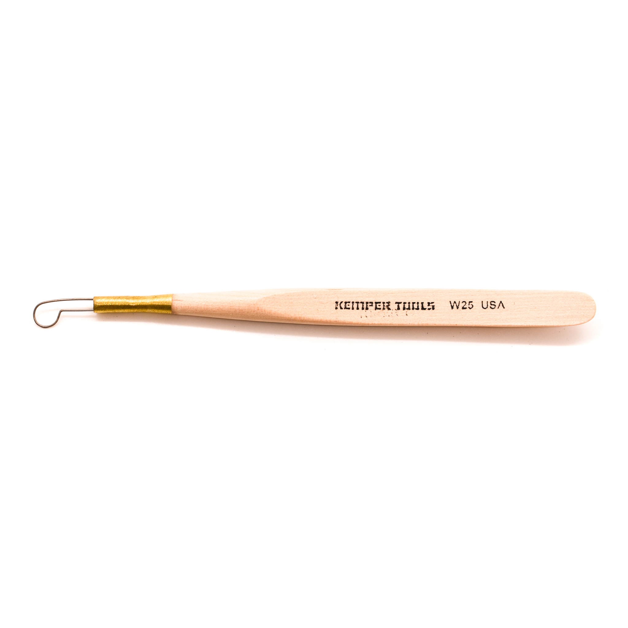 This tool is designed for delicate clay removal and shaping. This 5″ tool is made with plated high strength music wire, brass ferrules, and in imported hardwood.
