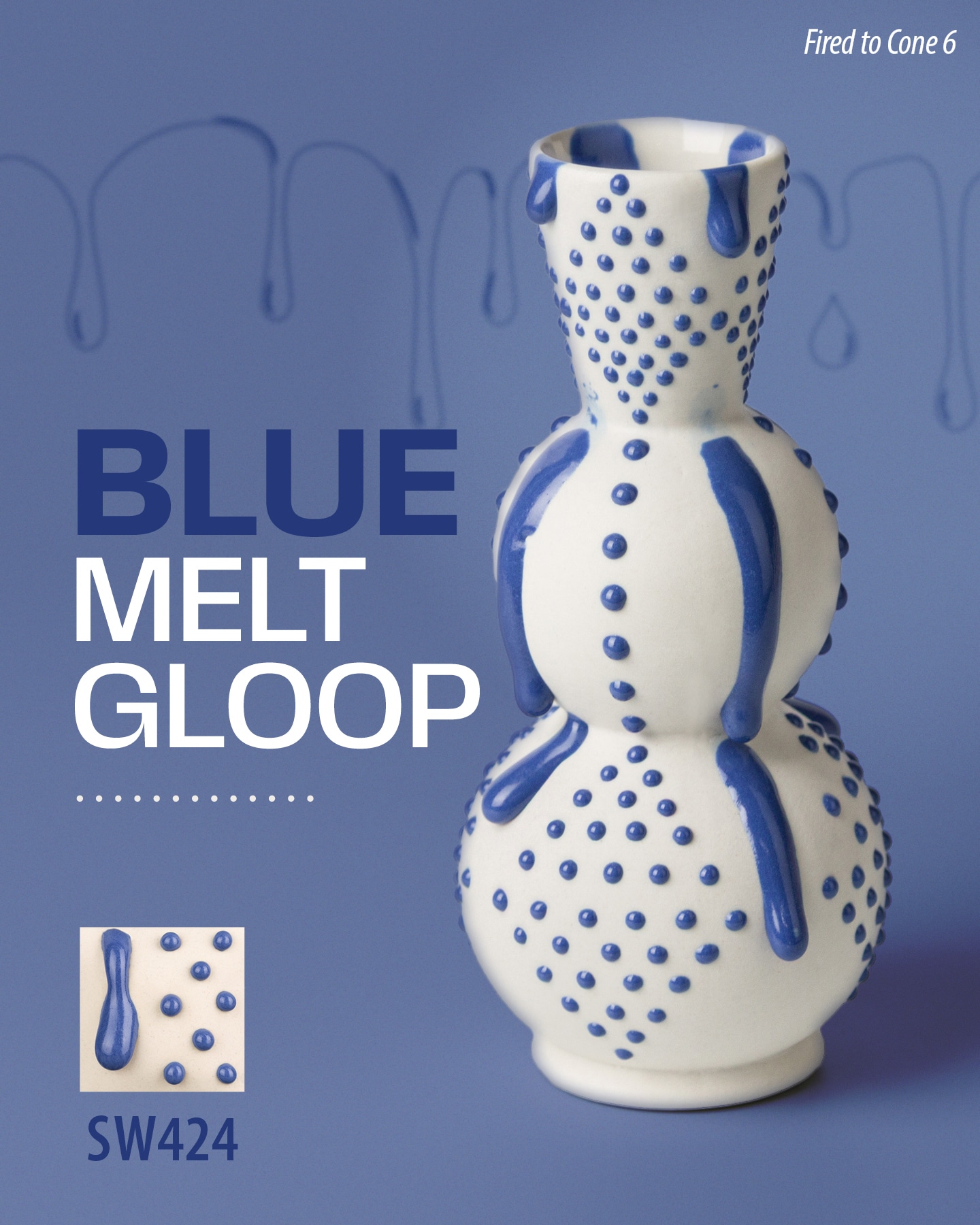 Melt Gloop is a stoneware glaze designed for application in dots or creating a dripping effect down your ceramic piece.