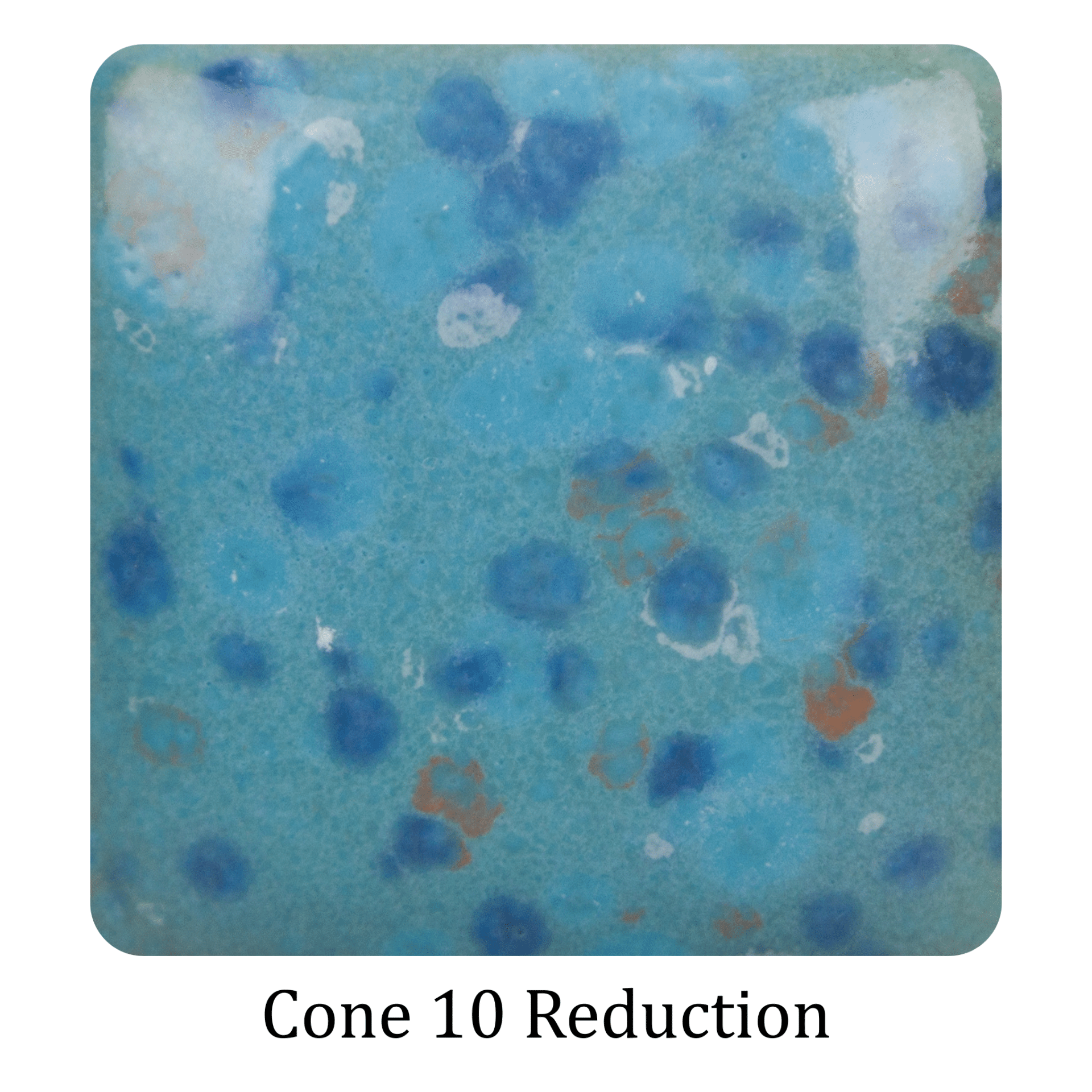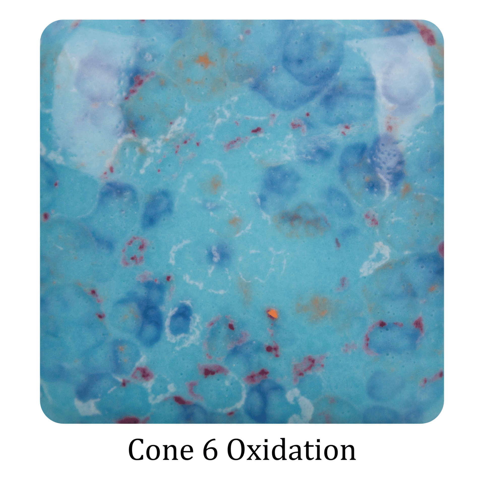 SP-2105 Speckled Tic-Tac-Turquoise is a heavily pigmented, viscous Stroke & Coat glaze with white, blue, orange and red specks that can be used for brush strokes or opaque coverage. One coat will create a translucent finish with subsequent coats adding opacity. We suggest two to three coats for full opacity and all over coverage. Will fire to a gloss finish without clear glaze.