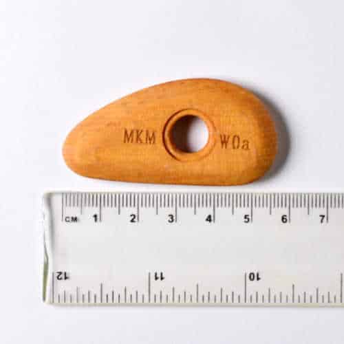 This rib is TINY! The MKM Mini Wood Rib W0a is used to create small bowls and pots. The dimensions are 2.3″ x 1.3″.