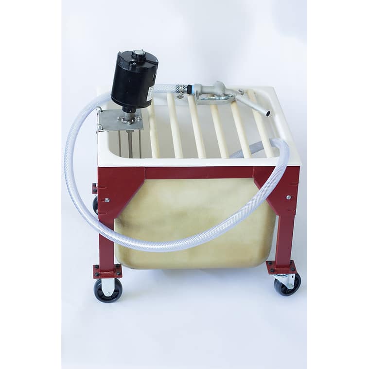The fiberglass tank holds up to 30 gallon of liquid. The top is covered with dowels that can be removed individually. Both models feature the SP4 suspended pump that rests on stainless steel pins and can easily be removed and transferred to another tank.