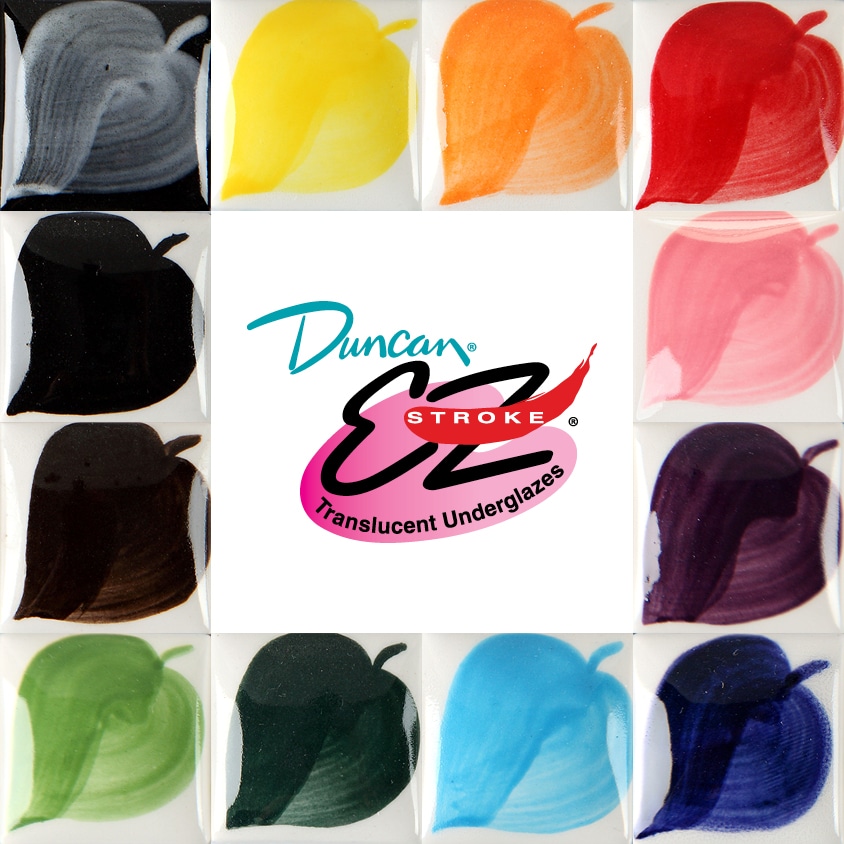 06-6 cone glazes. Achieving the perfect look is easy with Duncan E-Z Stroke Translucent Underglazes! Their intense pigment allows for high definition and decoration on your pieces. Create a watercolor effect with one simple stroke or add shading and depth with additional strokes.