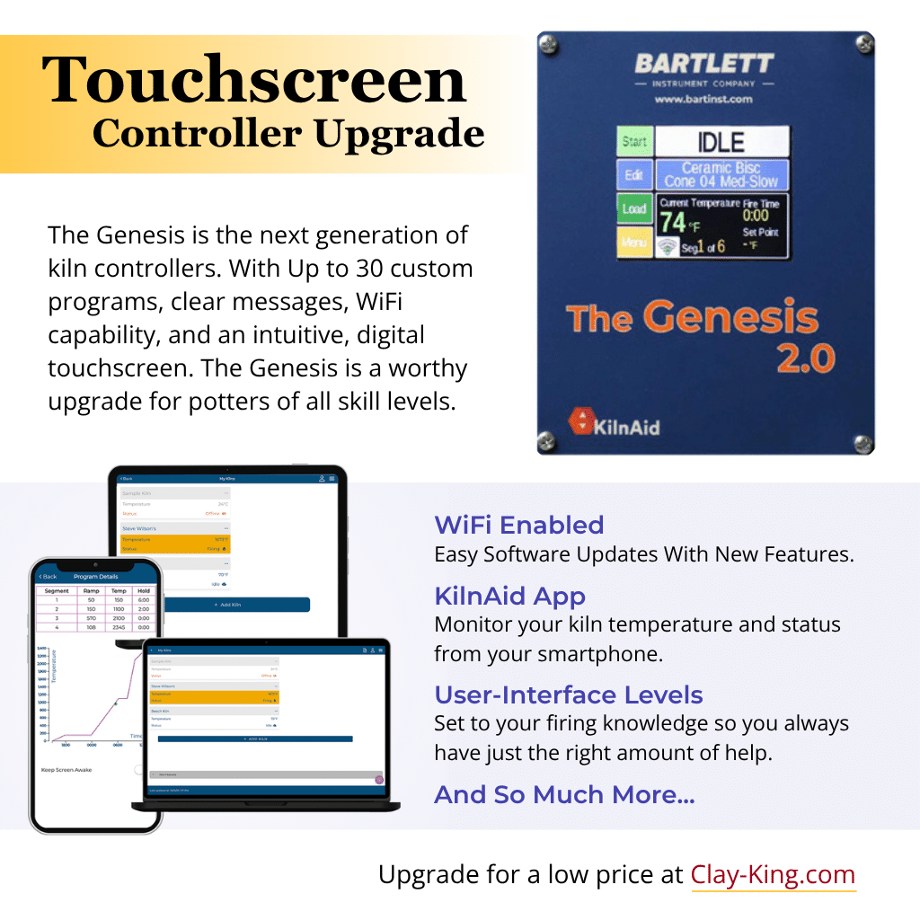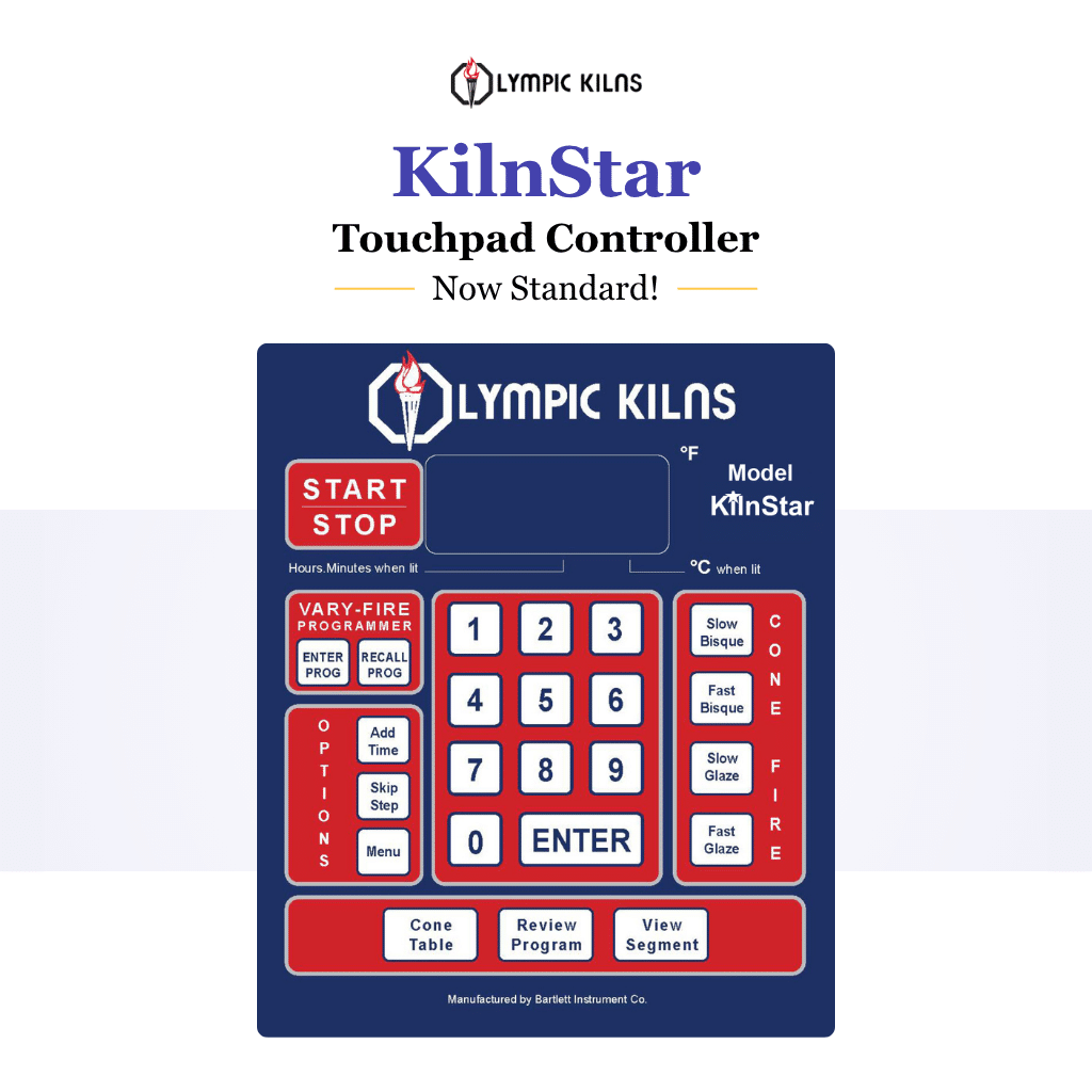 These models come equipped with a pilot light, metal stand, stainless steel jacket, and a Bartlett KilnStar digital controller.