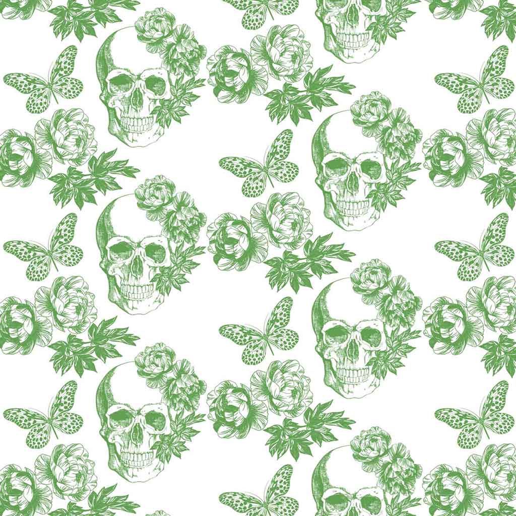 Sanbao Underglaze Transfer – Skull Flower Green – 9″ x 6.5″