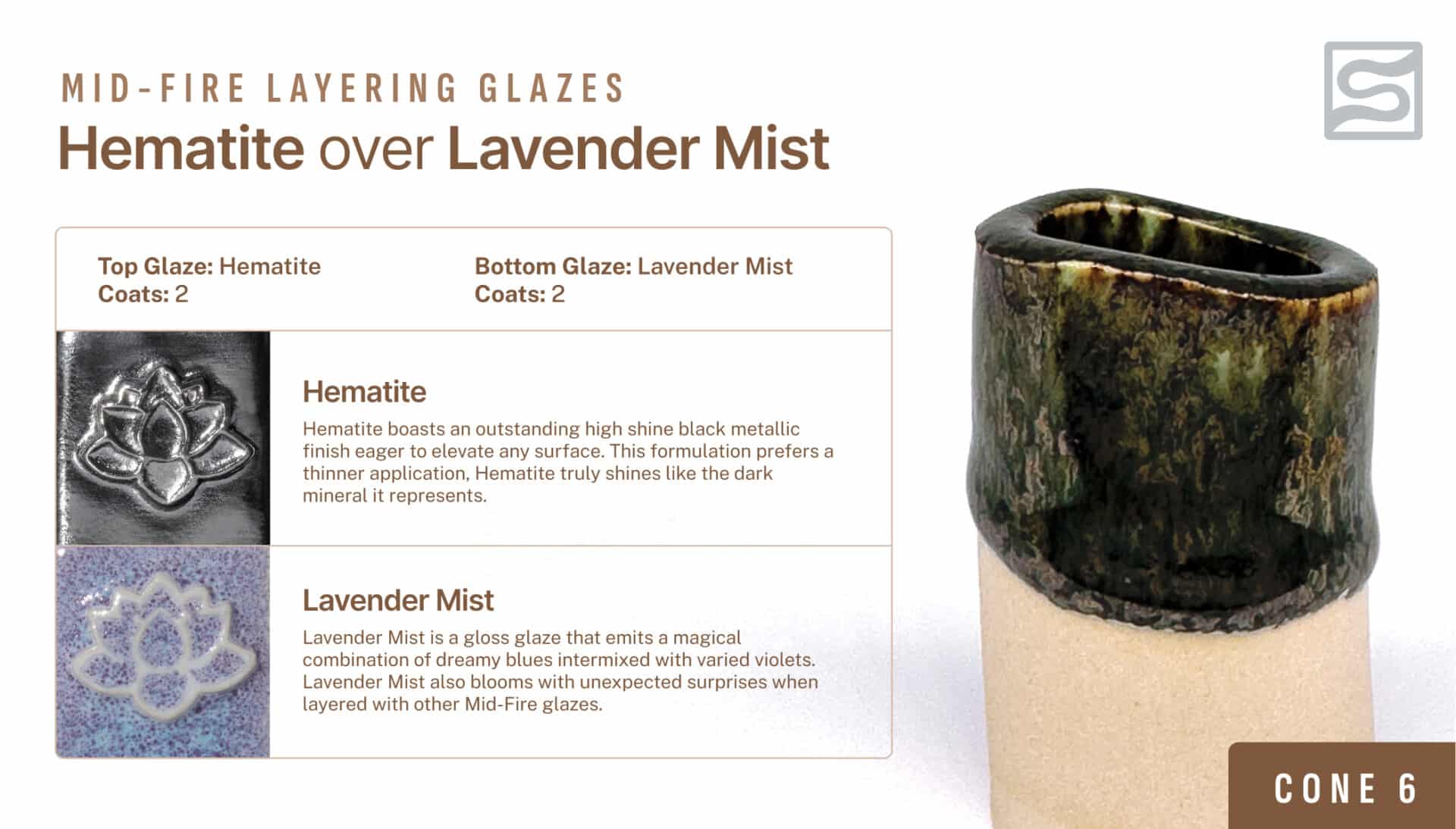 Create magical mottling and reduction-like effects when used at Cone 5/6 oxidation. Lead-free and certified dinnerware safe.